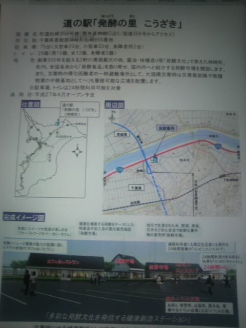 「道の駅発酵の里こうざき」ですが、今年(2014年)4月に開通した「圏央道」「神崎IC」から近く、来年(2015年)4月にオープンする予定となっています。